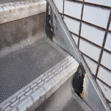 雨樋・霧除け・シャッター・鉄骨扉及び枠・格子口・テント庇・配管ボックス・屋上鉄骨階段・室内鉄骨階段裏・手摺・側板・鉄骨錆止め・屋上笠木目地補修・階段土台補修 |